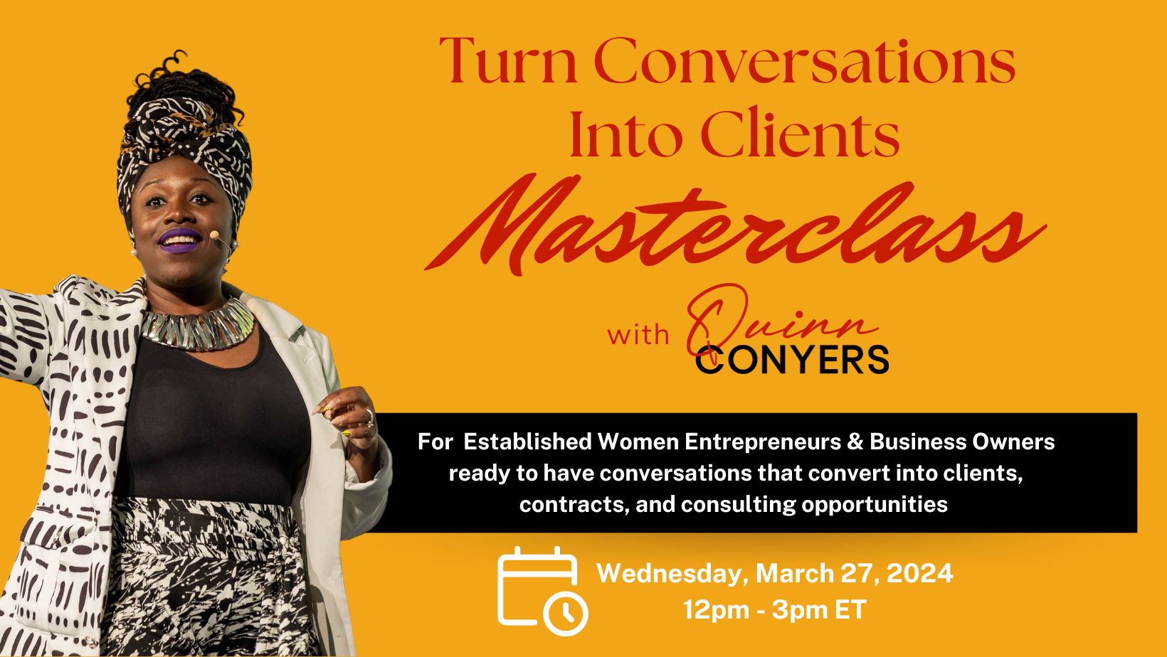 Established Entrepreneurs and Business Owners, Join Me LIVE For the Turn Conversations Into Clients Masterclass and Learn Why You Must RETIRE Your Boring and Basic Business Pitch to Turn Every Conversation Into Lucrative Contracts and New Clients.